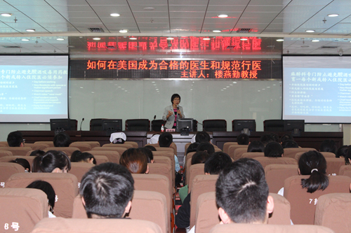 ??? ?會上,樓教授為大家作了題為“我如何在美國成為合格的醫(yī)生和規(guī)范行醫(yī)”的專題講座,完整地講述了其從浙一醫(yī)院的一名麻醉科住院醫(yī)師到美國的醫(yī)療中心麻醉科主任的過程,并用生動的案例向大家詳細介紹了在美國如何成為一個合格的合格的醫(yī)生和規(guī)范行醫(yī)。